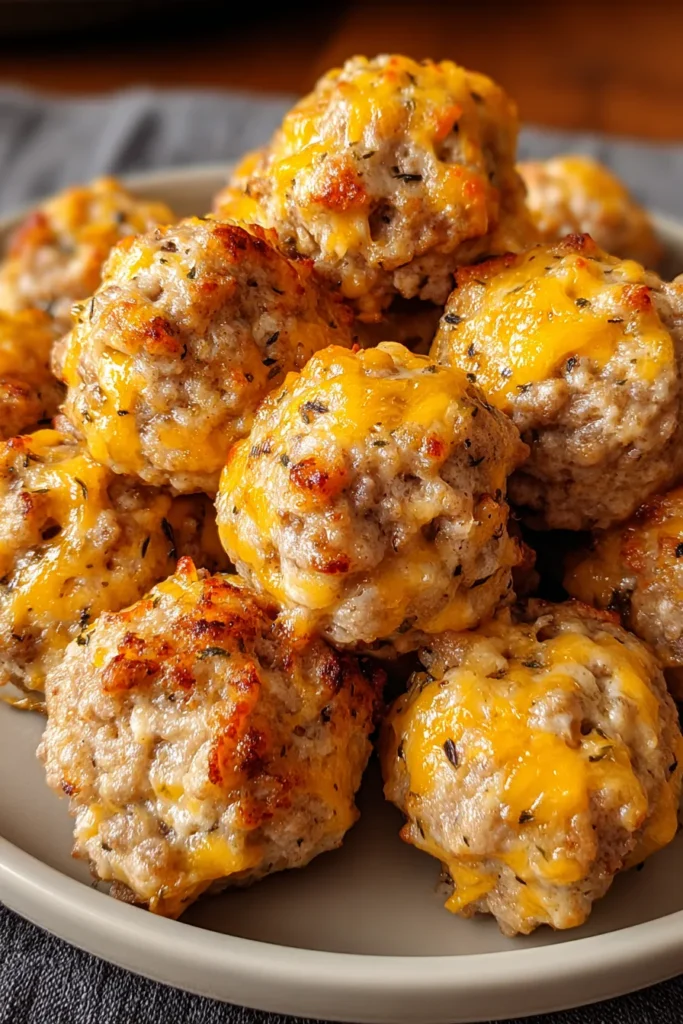 Place cooled sausage balls in an airtight container. They’ll stay fresh for up to 4 days. Reheat in a 350°F (175°C) oven for 8–10 minutes to regain that just-baked texture.
